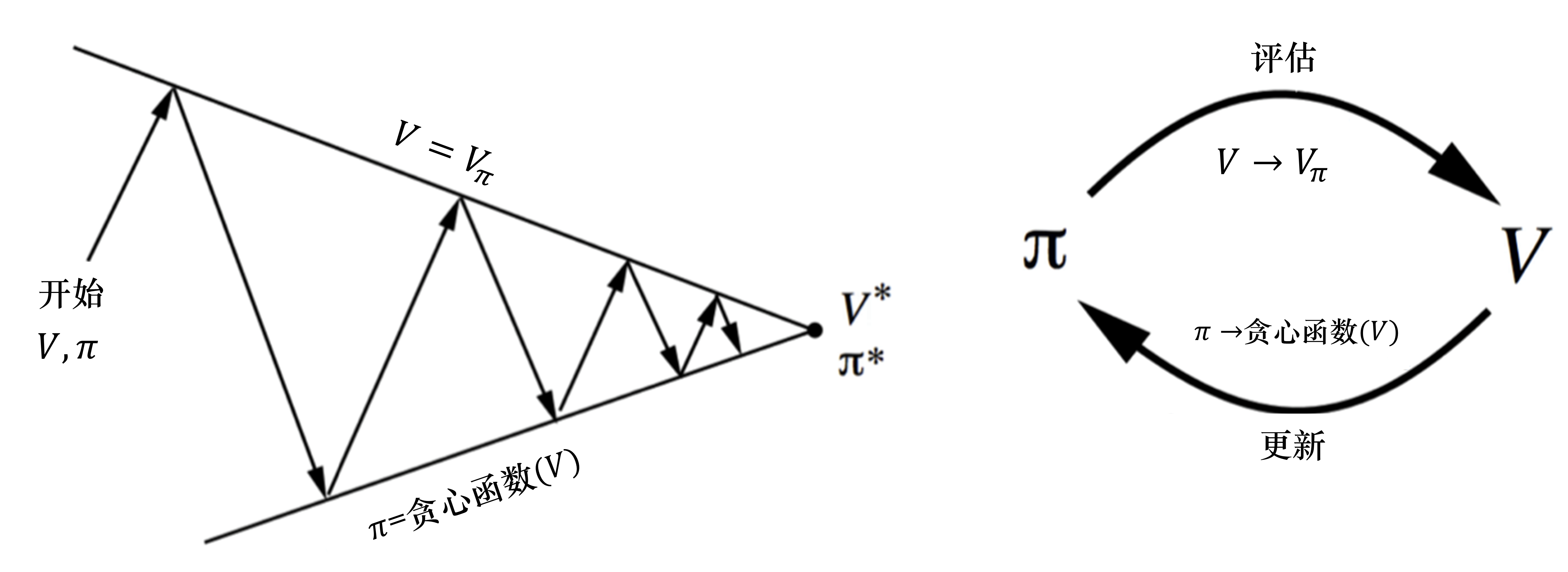 V_{i}(s) \leftarrow \sum_{a \in A} \pi(a \mid s)\left(R(s, a)+\gamma \sum_{s^{\prime} \in S} P\left(s^{\prime} \mid s, a\right) V_{i-1}\left(s^{\prime}\right)\right)