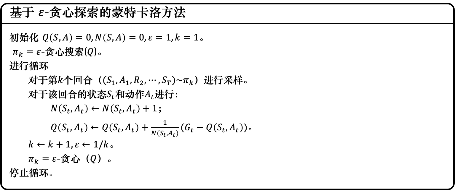 $\qquad\qquad\qquad\qquad\qquad\qquad\qquad\qquad\qquad$ 图 3.26 基于 $\varepsilon$-贪心探索的蒙特卡洛方法