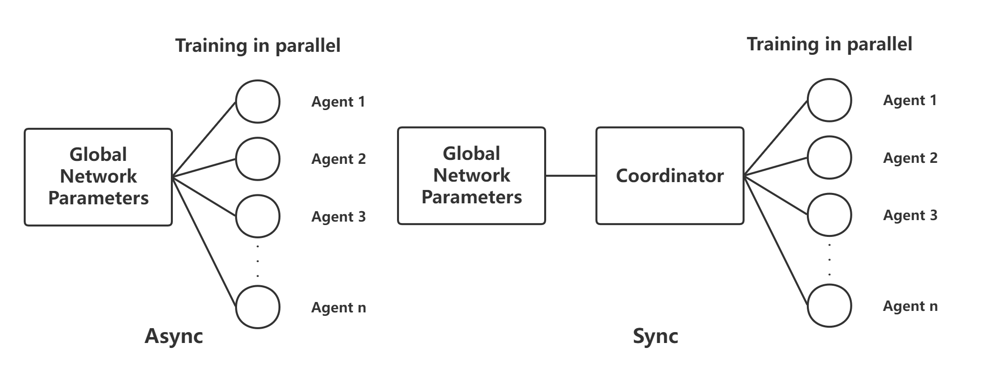 基于分布式PPO的可拓展强化学习 本论文考虑到使用的环境包含足够的丰富性和多样性,因此在PPO算法的基础上,提出了分布式的版本 DPPO(Distributed PPO ),并在同步更新(Synchronize, Sync)和异步更新(Asynchronous, Async)的方法上分别进行实验,发现在实践中使用同步更新的方法能够获得更好的结果。