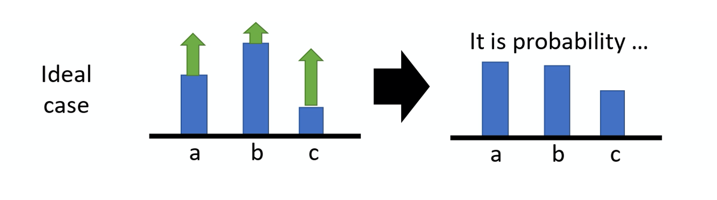 假设你现在可以做的行为就是有 3 个, 你的 output layer 就是有 3 个 neurons。每个 neuron 对应到一个可以采取的行为。input 一个东西后network 就会给每一个可以采取的行为一个分数。接下来,你把这个分数,当作是概率。 actor 就是看这个概率的分布,根据这个机率的分布,决定它要采取的行为。比如说 70% 会走 left20% 走 right10% 开火等等。概率分布不同,你的 actor 采取的行为,就会不一样。