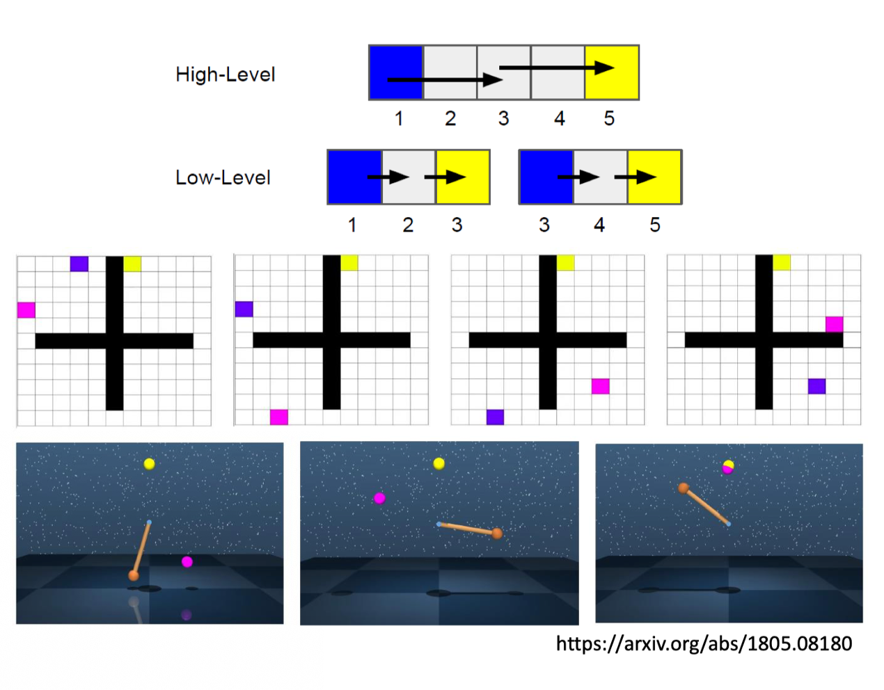 在这个 task 里面,它只有两个 agent ,下层的一个 agent 负责决定说要怎么走,上层的 agent 就负责提出愿景。虽然,实际上你可以用很多层,但 paper 就用了两层。