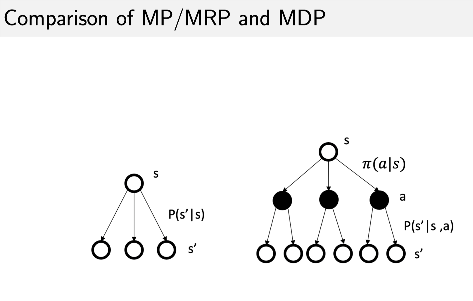 这里我们看一看,MDP 里面的状态转移跟 MRP 以及 MP 的一个差异。