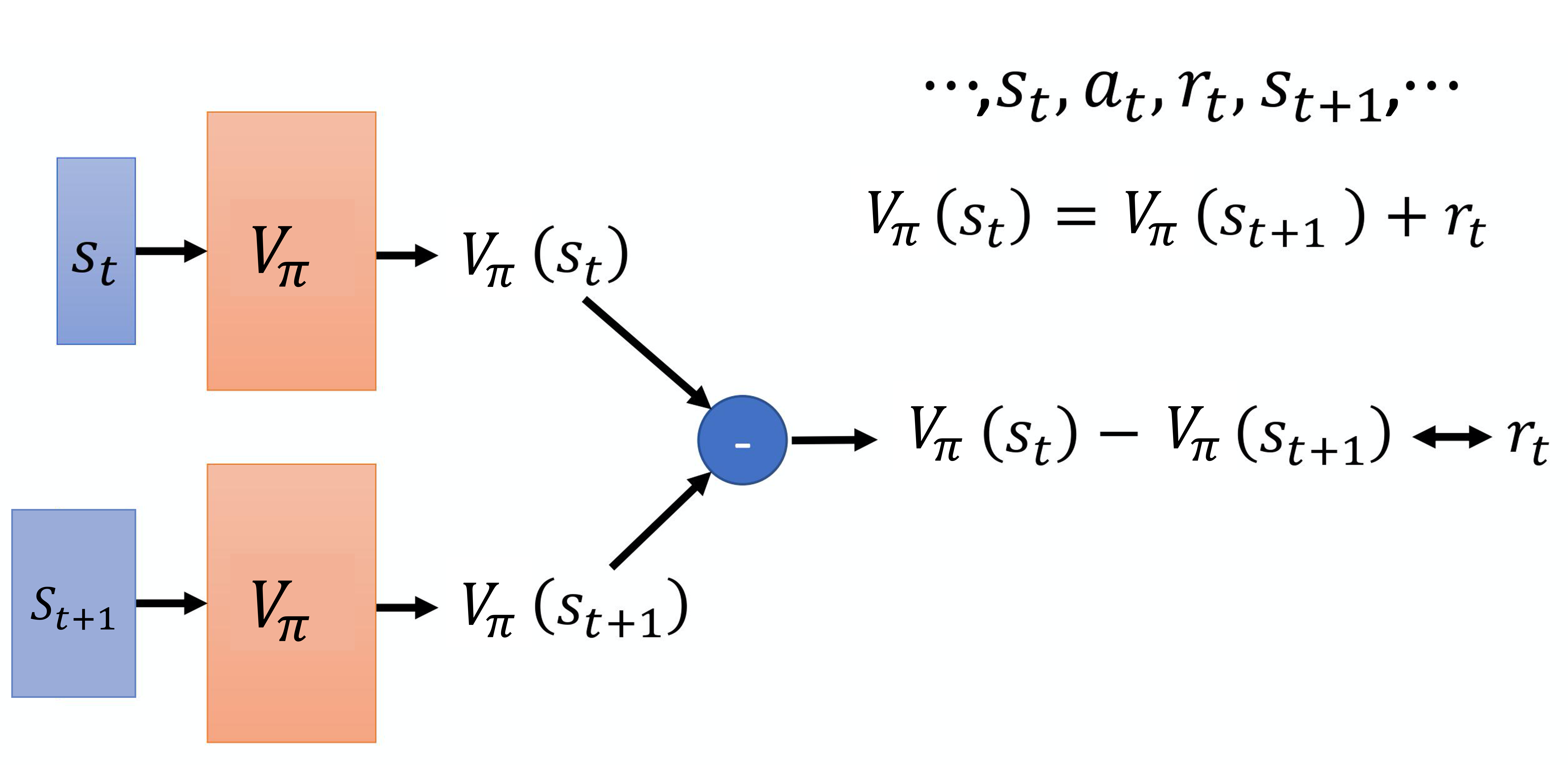 V_{\pi}\left(s_{t}\right) \longleftrightarrow r+V_{\pi}\left(s_{t+1}\right) \tag{6.3}