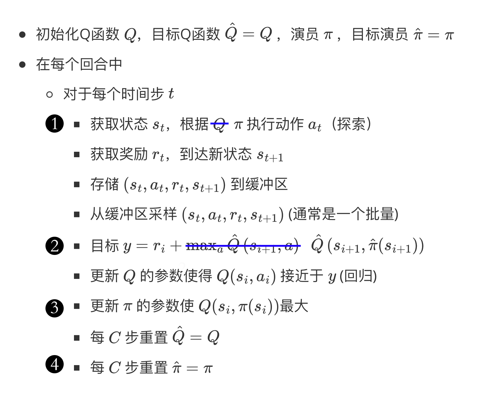 (4)第四个改变是,我们不仅要取代目标的 Q 网络,还要取代目标策略。