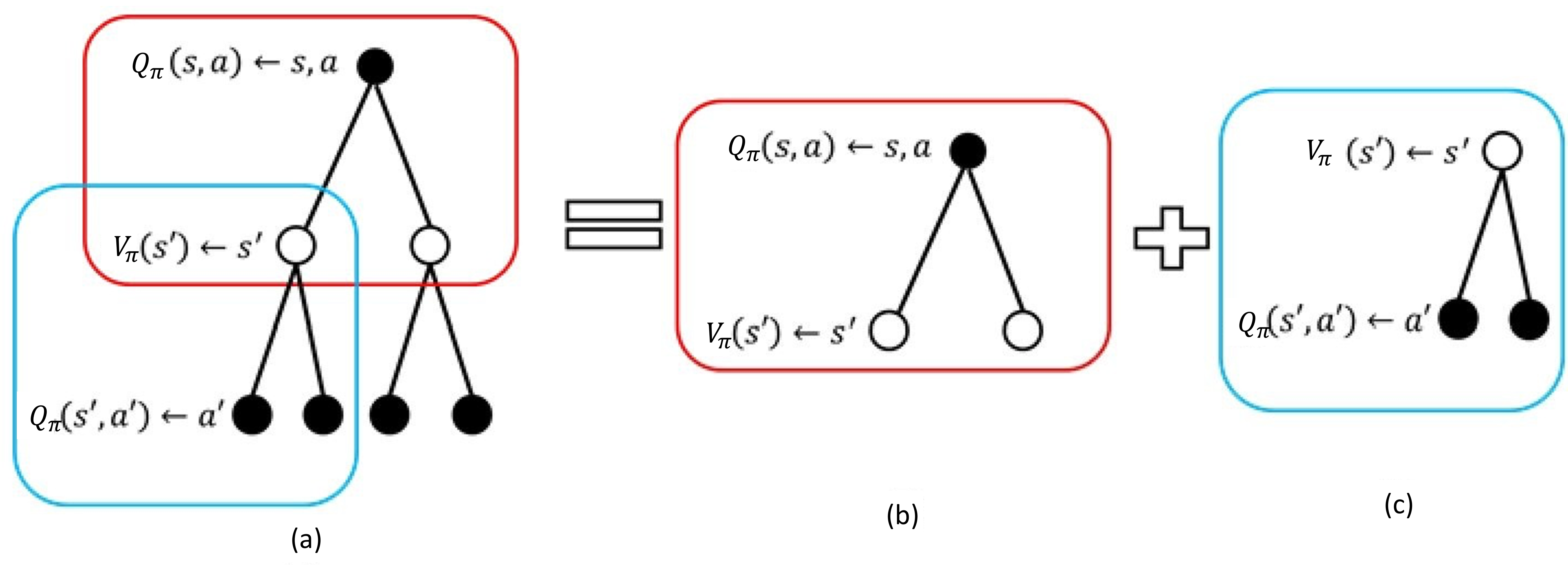 我们就可以得到 Q 函数之间的转移。Q学习是基于贝尔曼最优方程来进行的,当取Q函数值最大的状态( \underset{a'}{\max} Q^{*}\left(s^{\prime}, a^{\prime}\right) )的时候可得
