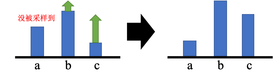 116页,图4.10下面一段的第5行:我们可能只采样到动作b或者只采样到动作c → 我们可能只采样到动作b和动作c